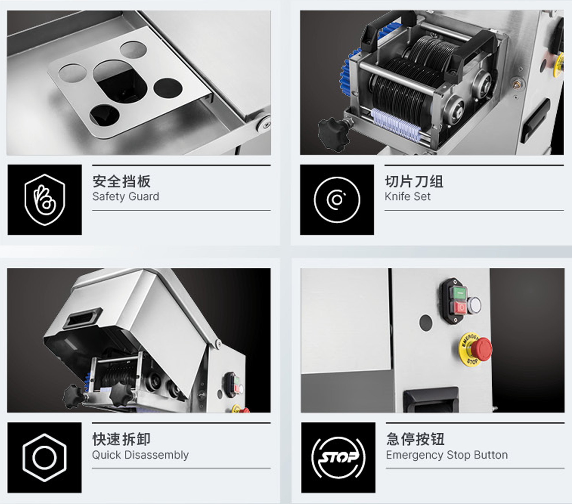 机身和切肉部件为不锈钢材质,符合食物卫生标准