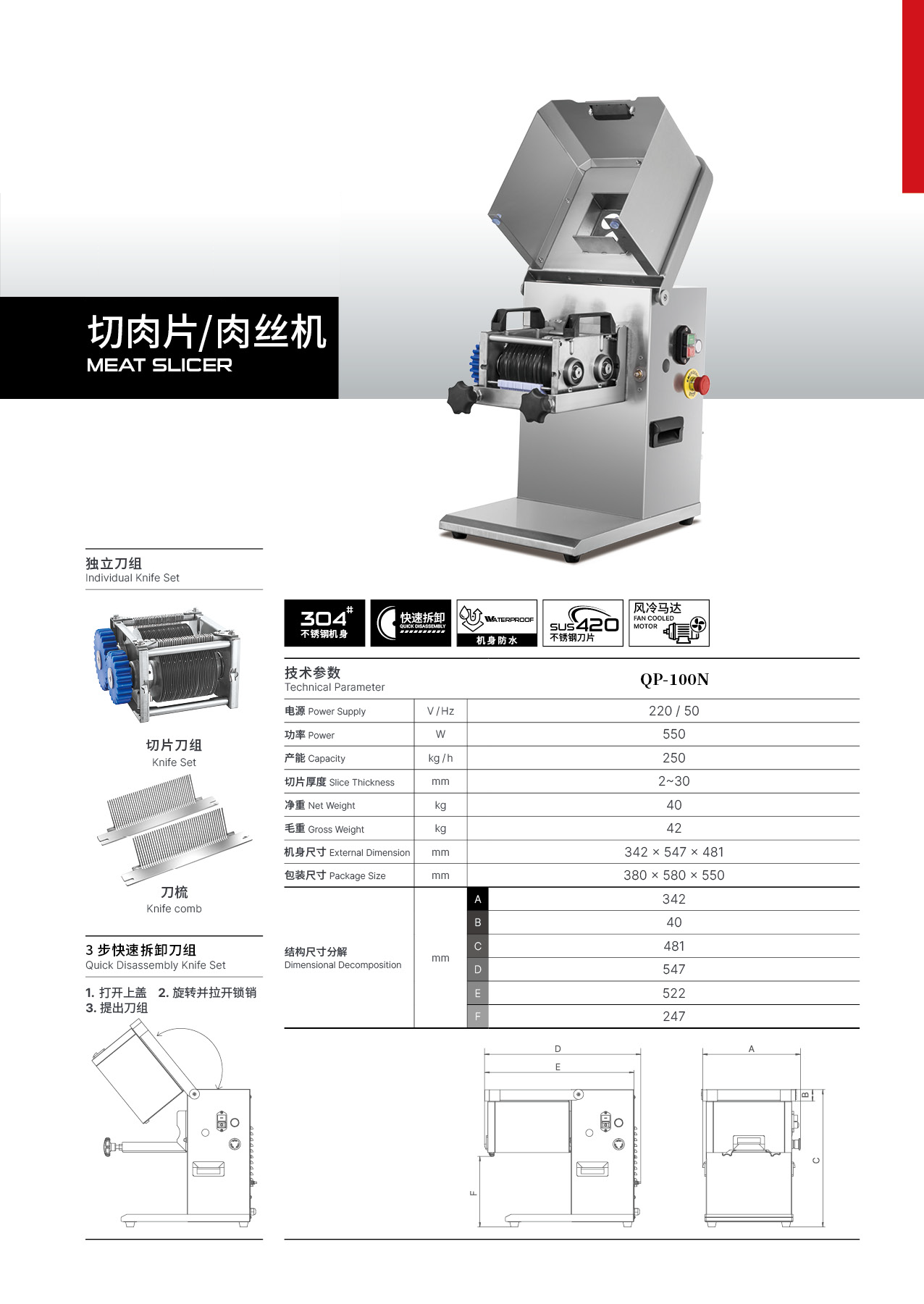 密封不锈钢机身,独立刀组,拆卸方便,便于清洁