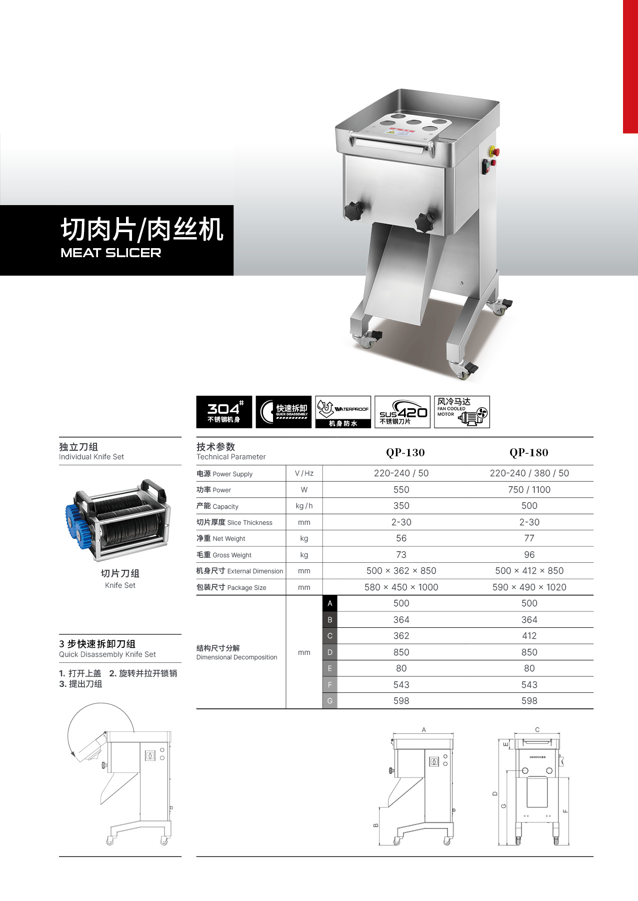 产品型号:商用切肉片/切丝机 QP-130/180 商用餐饮肉类加工机械