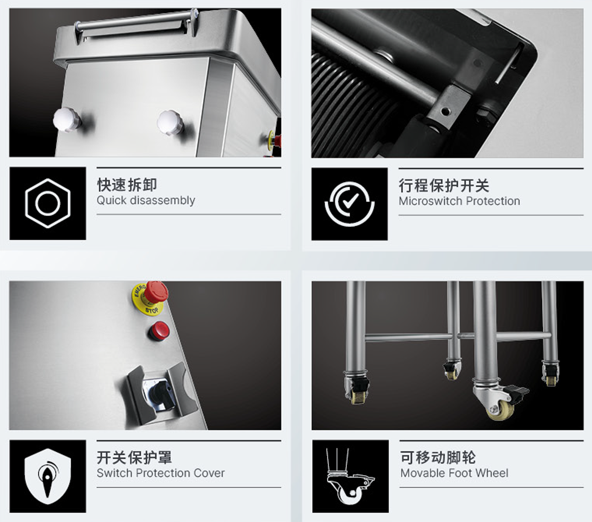 机身和切肉部件为不锈钢材质,符合食物卫生标准