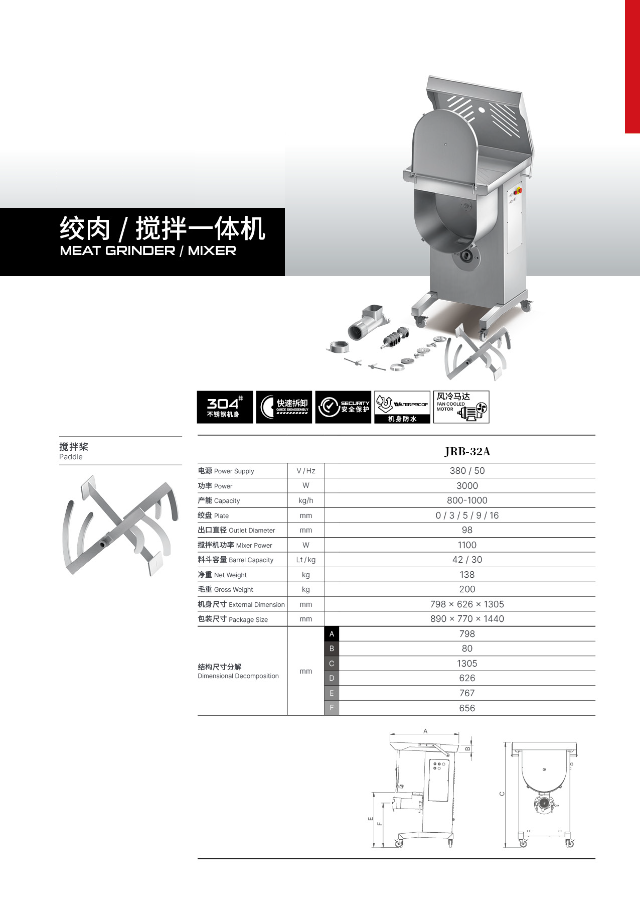 两个独立的 IPX5 风冷马达,一个负责绞肉,一个负责搅拌